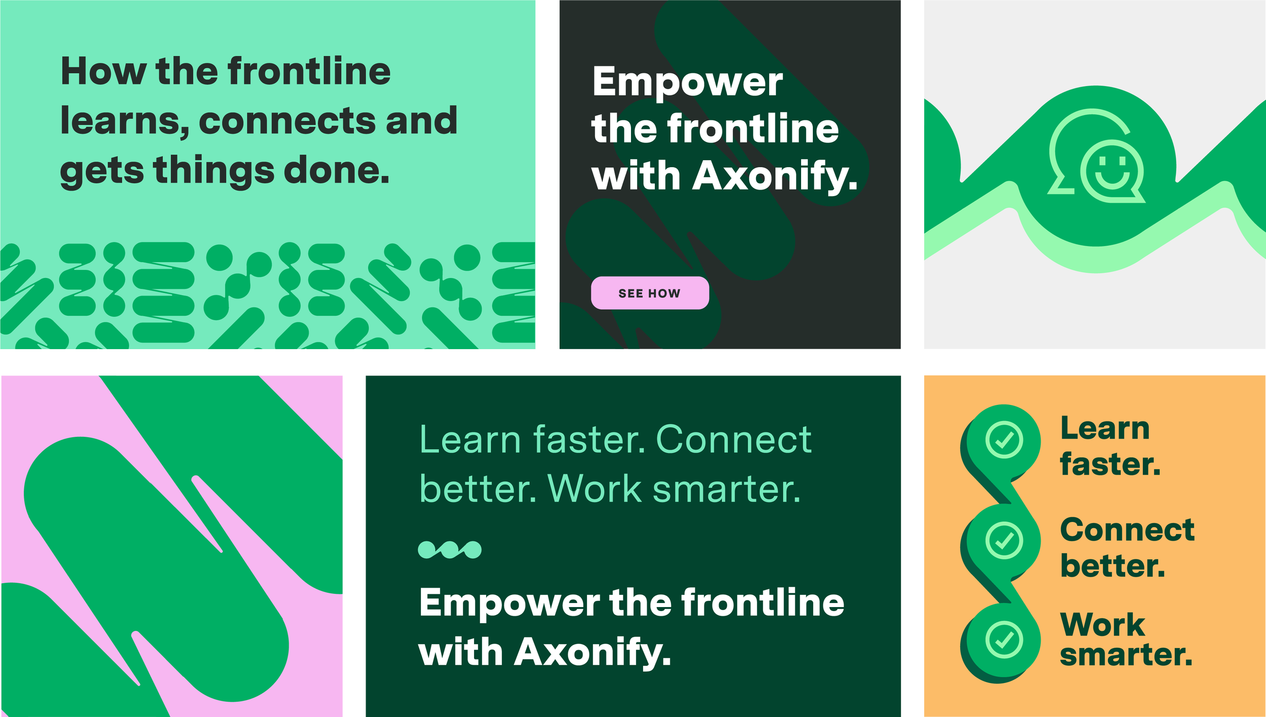 Based on great work done for Nudge, Axonify requested a refresh to its brand after it acquired Nudge. The goal: unify two brands into one and tell a bigger, bolder together story about the two combined companies that were forming a frontline employee platform that supports more than 3.5 million users in 160+ countries.